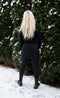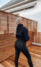 Ik vond het in donkerblauw geweldig, maar niet in zwart! De zwarte leggings zijn langer en wijder aan de benen, het rekt super goed dus ik zou waarschijnlijk 2 maten kleiner kunnen, maar ik zou eigenlijk een maat groter moeten nemen omdat er absoluut geen rek in de taille zit? Als je geen grote buik had, krijg je er nu een. De strakke taille zonder rek die de buik in tweeën deelt, samen met de stof in de onderbuik die echt heel los en slap is, geeft je een buik die in tweeën is gedeeld die zowel boven als onder de rand van de broek uitsteekt. Het wordt nog erger als je zit, het is lang geleden dat ik me zo opgeblazen heb gevoeld. De stof trekt ook aardig wat stof aan.