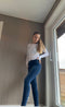 Zo ongelooflijk tevreden mee! Ik ben erg gewend om skinny jeans te dragen, dus ik was erg benieuwd hoe ik dit zou vinden. Ik was echt positief verrast. De maat paste perfect, ik draag maat xs en het zat als gegoten en het staat echt geweldig. Het is een nieuwe favoriet in mijn kast! ❤️