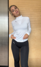 Mooie trui die bij bijna alles past. Smalle pasvorm, perfect voor mij als ik klein ben. Pluspunt dat de mouwen en de lengte iets korter zijn dan bij veel lange mouwen die ik heb geprobeerd. Ik gebruik het om te paardrijden en het ziet er geweldig uit, zowel bij rijbroeken als bij trainingsleggings.