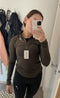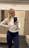 Deze longsleeves zijn gewoon helemaal geweldig! Precies dun genoeg, ze zijn zacht, rekbaar, mooi, comfortabel en perfect om mee te trainen of om te dragen voor of na het trainen. Ik heb ze in meerdere kleuren en wil er meer😍. Ik heb Olive in maat XS en White in maat S. Beiden passen goed, en er is niet zoveel verschil. De witte is iets losser, maar zit nog steeds goed. Ik draag zowel XS als S in andere tops.