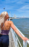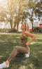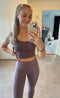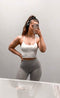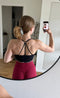 Ik hou ervan dat deze top zonder beha kan worden gedragen. Het biedt gemiddelde ondersteuning, perfect voor pilates en basis workoutsessies. Het zit iets strakker dan de meeste tops, maar ik kan het nog steeds in mijn normale maat dragen. Een groot pluspunt zijn de verstelbare bandjes!